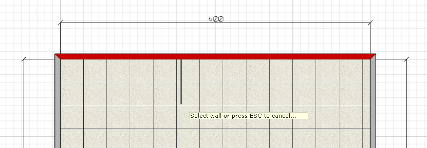 Next, the message “Select a wall or press ESC to cancel…” appears next to the cursor, prompting you to choose the wall of the room where you want to place the wardrobe. As you move the mouse, the nearest walls will be highlighted in red. In this example, select the upper wall of the layout: