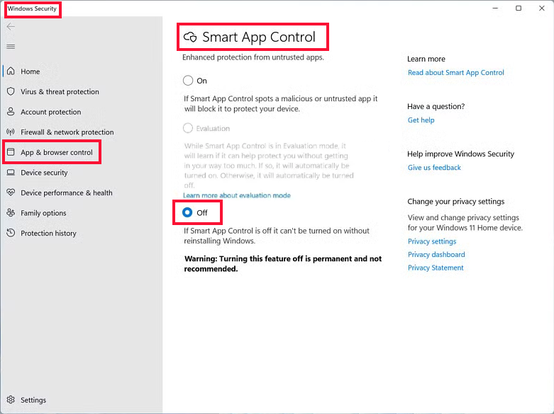 • Go to SMART APP CONTROL.